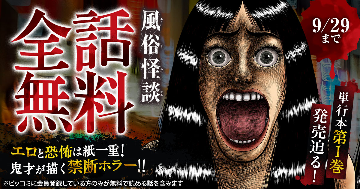 小学館のマンガサイト「ビッコミ」で、『風俗怪談』が 全話無料で読めるキャンペーン を開催中です。
