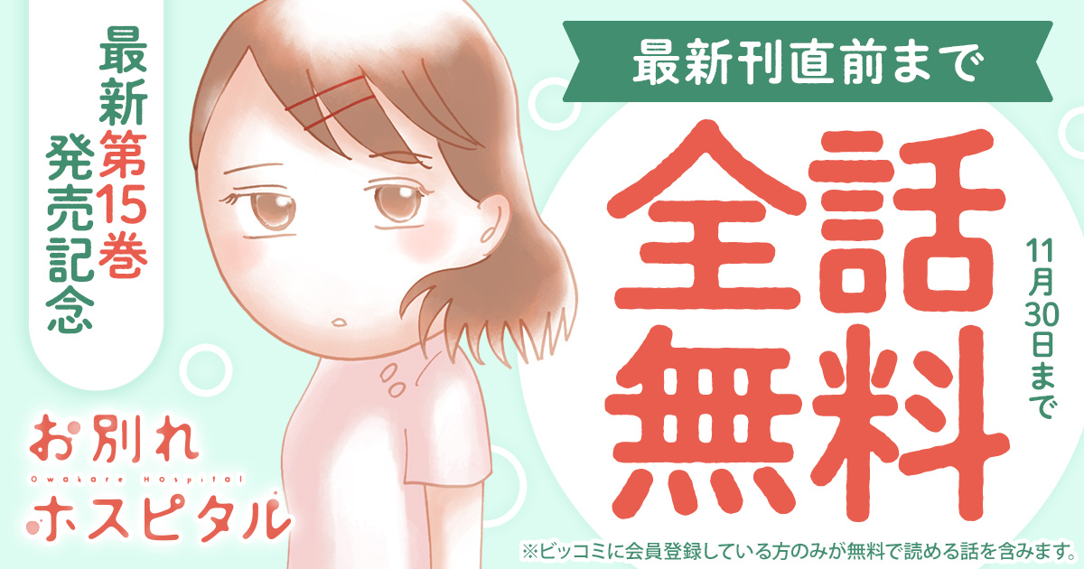 『お別れホスピタル』最新第15巻が本日11/28(金)に発売したことを記念して、 最新刊直前まで全話無料で読めるキャンペーン を実施中です。
