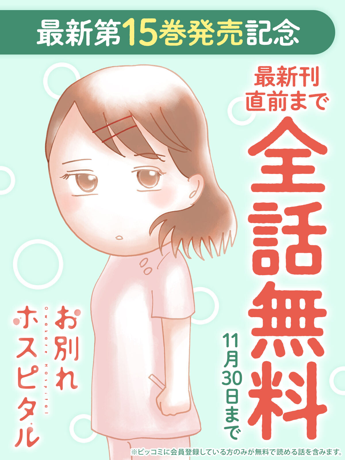 【最新刊直前まで全話無料】『お別れホスピタル』最新第15巻発売記念キャンペーン実施中!