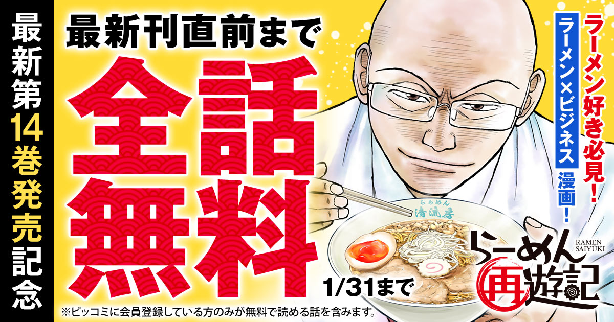 【最新刊直前まで全話無料】『らーめん再遊記』最新第14巻発売記念キャンペーン実施中!