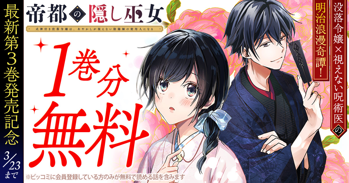 『帝都の隠し巫女 〜式神付き没落令嬢は、あやかしが視えない陰陽師の使用人になる〜』最新第3巻が本日3/10(火)に発売したことを記念して、 1巻分無料で読めるキャンペーン を実施中です。