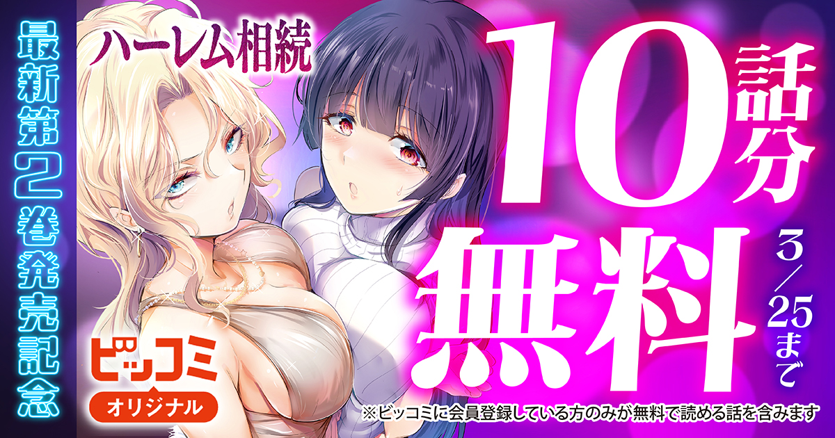 ビッコミでは、『ハーレム相続』が 10話分無料 で読めるキャンペーンを実施中です。